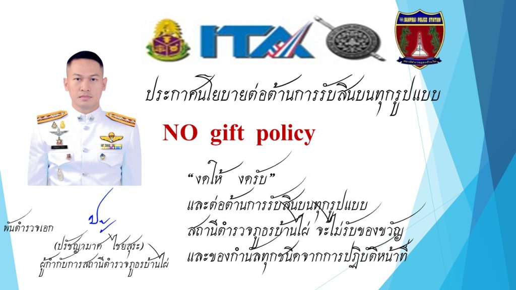 ประกาศเจตนารมณ์ไม่รับของขวัญหรือของกำนัลทุกชนิดจากการปฏิบัติหน้าที่ (No Gift Policy) ไทย